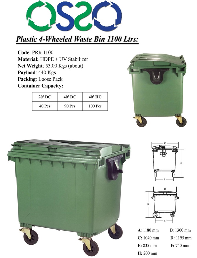 OSSO 770 Litre Plastik Çöp Konteyner