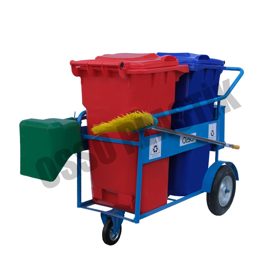 3 Teker ile Araçta ik adet 120 litre konteyner ve kullanıcı için 20 litre malzeme kutusu bulunmaktadır